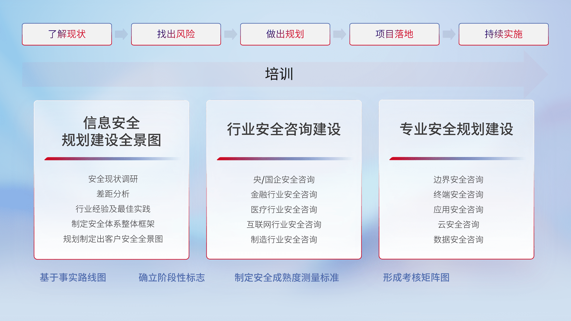 通过专业的法律咨询解读、、合规架构体现、、、、差异化解决方案、、测试实施支持等服务,,为客户量身打造等保合规体系。。
