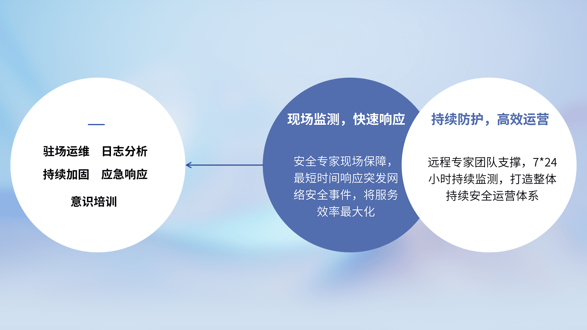 7X24小时持续监测安全事件,保持安全策略有效性,降低资产脆弱性风险,,,,精准拦截黑客攻击,,,,减少被黑客利用的机会,,,第一时间遏制,,,降低损失。。